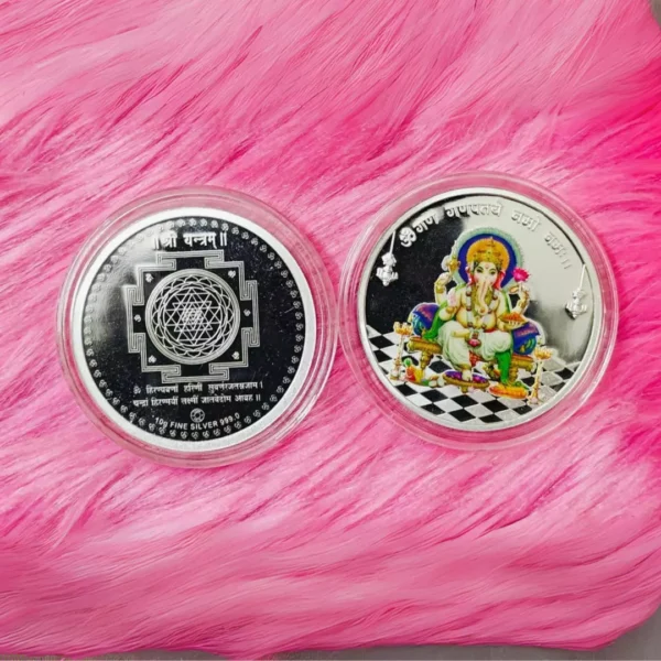 Embrace the essence of prosperity and abundance with the Abundance Shield Laxmi Yantra silver coin. Crafted from high-quality 92.5 silver, this exquisite coin features a detailed Laxmi Yantra design, revered for its powerful energies that attract wealth and success. Weighing 10 grams, this coin is not only a beautiful addition to your spiritual collection but also serves as a meaningful gift for loved ones seeking blessings of prosperity. Let this stunning piece enhance your home or workspace, radiating positivity and inviting financial growth into your life.
