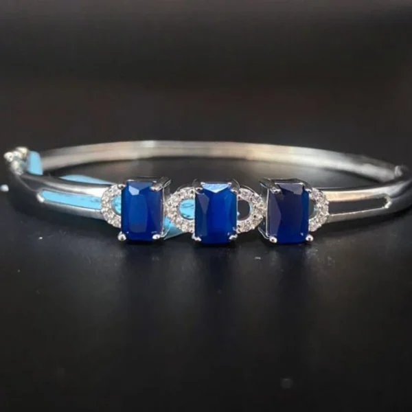 Embrace the allure of deep oceanic tones with the Azure Radiance Sterling Silver Bracelet. Weighing 9.610 grams, this bracelet is expertly crafted from 92.5 silver and showcases a unique sling design adorned with captivating blue gem accents. The striking blue hue adds a touch of elegance and sophistication, making it an ideal accessory for any ensemble, whether for everyday wear or special occasions. Its refined design and brilliant finish ensure a timeless appeal.