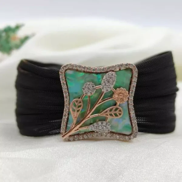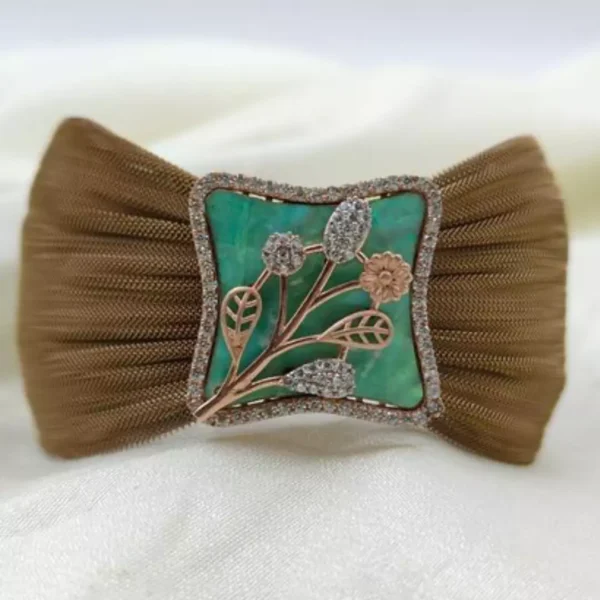 Embrace elegance with the Violet Bloom Cuff Bracelet, meticulously crafted from 92.5 silver and designed to captivate with its luxurious rose gold floral finish. The top features a striking chrome green hue, creating a harmonious balance between vibrant color and delicate floral artistry. This cuff bracelet is a stunning addition to any outfit, offering a unique blend of modern sophistication and timeless style.