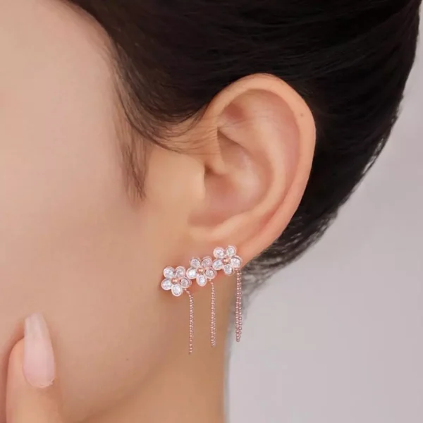 The Blossom Symphony Earrings showcase a captivating trio of floral designs, perfect for adding a delicate charm to your everyday or special occasion outfits. Made from high-quality 92.5 silver, these earrings feature a modern style elevated by a luxurious rose gold polish. The intricate floral patterns exude grace and femininity, making them a versatile piece that brings elegance to any ensemble.