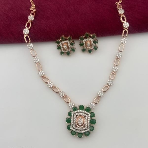 Discover the allure of the Celestial Blossom Necklace and Earrings Set, crafted from 92.5 silver and adorned with luxurious rose gold plating. This set showcases a delicate floral design that captures the elegance of a blooming garden. The intricate details and refined finish offer a sophisticated touch, perfect for enhancing any attire. Ideal for both formal events and everyday elegance, this set includes a necklace and matching earrings, seamlessly blending grace and modern style.