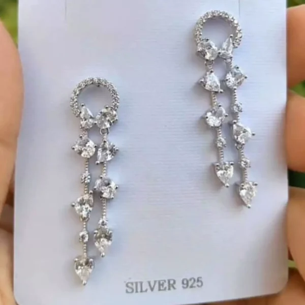 Step into a realm of timeless sophistication with the Celestial Elegance long earrings, designed to complement your innate grace. These exquisite earrings are crafted from high-quality 92.5 silver, featuring a sleek design that is beautifully enhanced with premium zirconia stones, ensuring they catch the light with every movement.