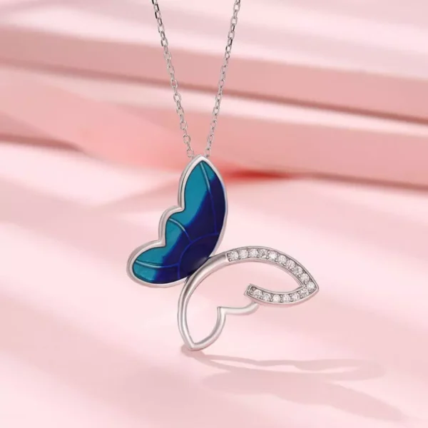 Celestial Flight: A mesmerizing 92.5 silver butterfly pendant in ocean blue blush, available for ₹2,599.
