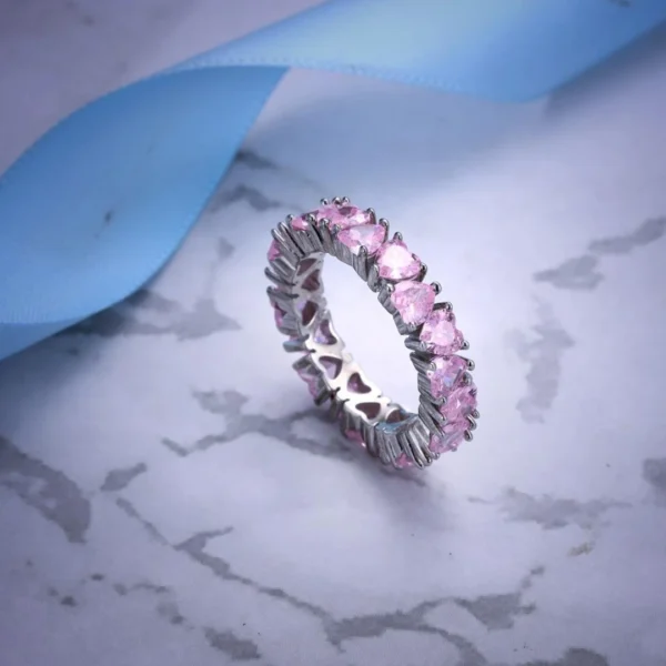 The Charming Embrace ring offers a playful yet elegant touch, featuring a pink heart gem in a sling design perfect for daily wear.