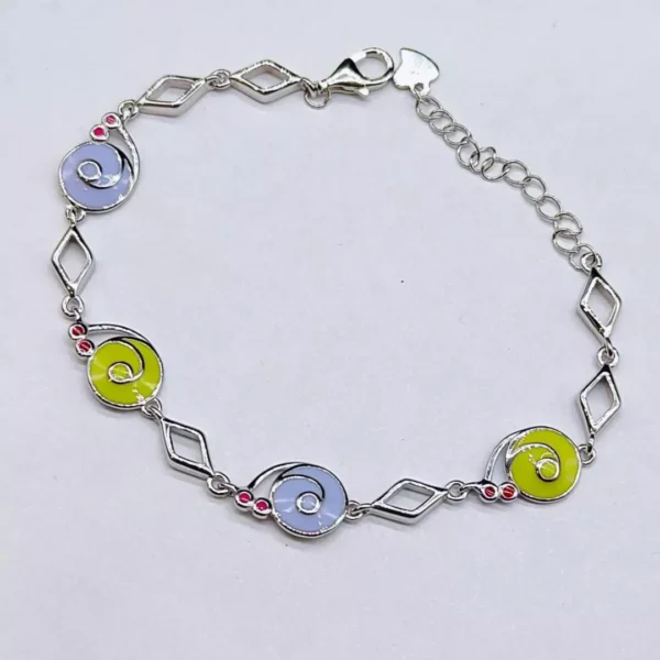 The Colorful Whimsy Silver Charm Wrist Chain is a delightful accessory crafted to bring joy to young ones. Made from premium 92.5 silver, this charming wrist chain features an array of cute, colorful charms that dance playfully along the wrist. Perfect for adding a splash of personality to everyday outfits, this piece is designed for comfort and style, making it ideal for adventurous spirits. With its lightweight feel and vibrant design, this wrist chain is sure to become a favorite for any child, creating memories of fun and laughter.