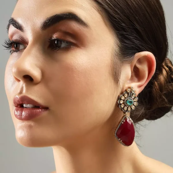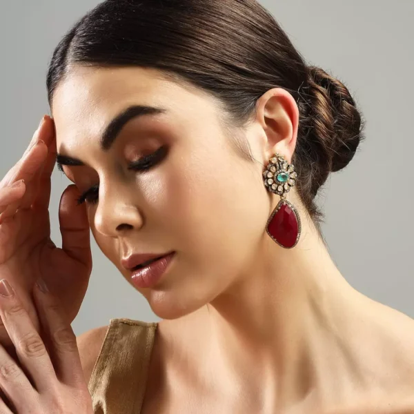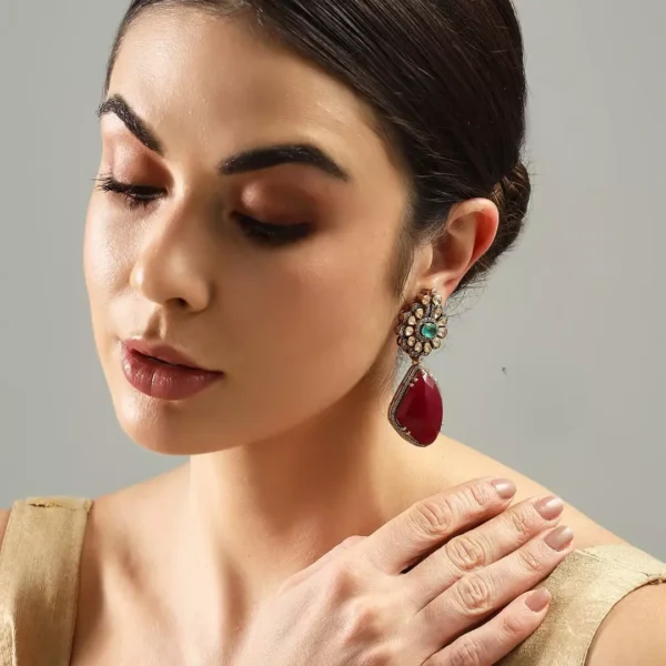 The Crimson Allure Silver Earrings captivate with their radiant red gems set in premium 92.5 silver. Designed with a modern touch, these earrings exude sophistication and charm, making them the perfect accent for both formal and casual occasions. The bold red stones shimmer against the sleek silver setting, creating an eye-catching contrast that draws attention. This refined pair offers a timeless elegance that complements a wide range of styles, making it a versatile and luxurious addition to any jewelry collection.