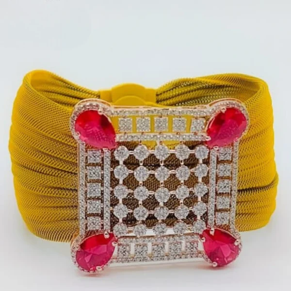 The Crimson Blossom Cuff Bracelet, priced at ₹5599, combines a muddy yellow base with a bold crimson accent. Made from 92.5 silver, this bracelet offers a unique blend of colors, adding a distinctive and refined touch to your style.