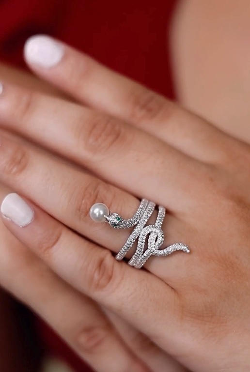 - Striking Snake Ring: This unique ring features a serpent design with a pearl nestled in its mouth. It’s a conversation starter with a touch of edgy charm.