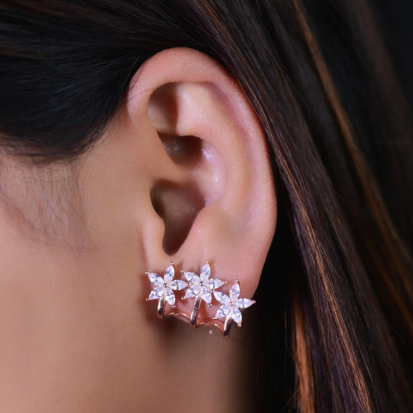 The Enchanted Blossom Earrings, priced at ₹1899, showcase a distinctive floral design in 92.5 silver. These elegant earrings bring a refined touch to your ensemble, making them a versatile addition to your jewelry collection.