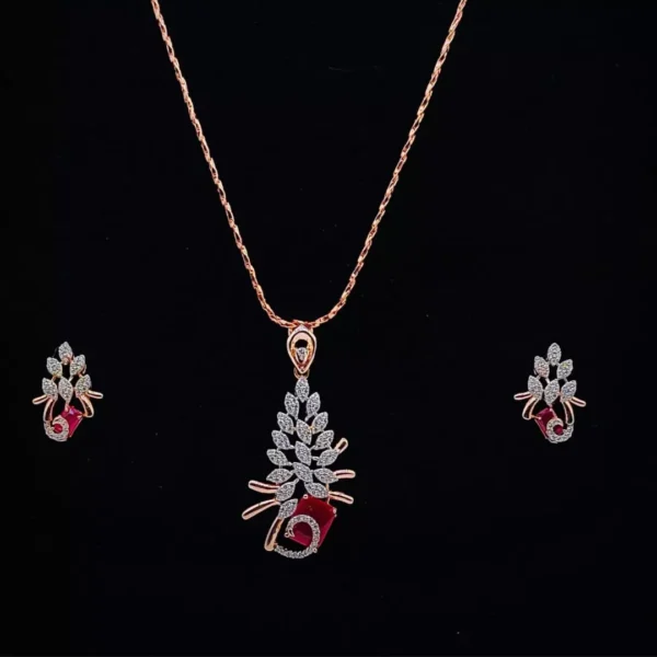 The Enchanted Blush Pendant Set is a stunning display of sophistication and charm. Expertly crafted from 92.5 silver, this set features a luminous pink gem delicately set in luxurious rose gold polish. Its refined design ensures it adds a touch of elegance to any outfit, making it perfect for both everyday wear and special occasions. Illuminate your style with this exquisite pendant set that celebrates the beauty of simplicity and grace.