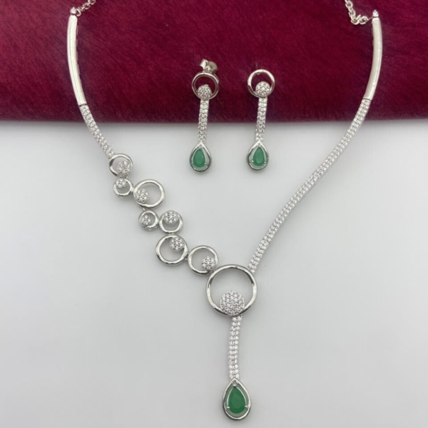 Step into a world of enchantment with the Enchanted Forest Necklace & Earring Set. This elegant set, crafted from 92.5 silver, features a sophisticated silver finish paired with a striking green gem. With a substantial weight of 24.670 grams, it offers a luxurious presence and exceptional quality. Perfect for adding a touch of glamour to both formal and casual outfits, this set is designed to make a lasting impression.