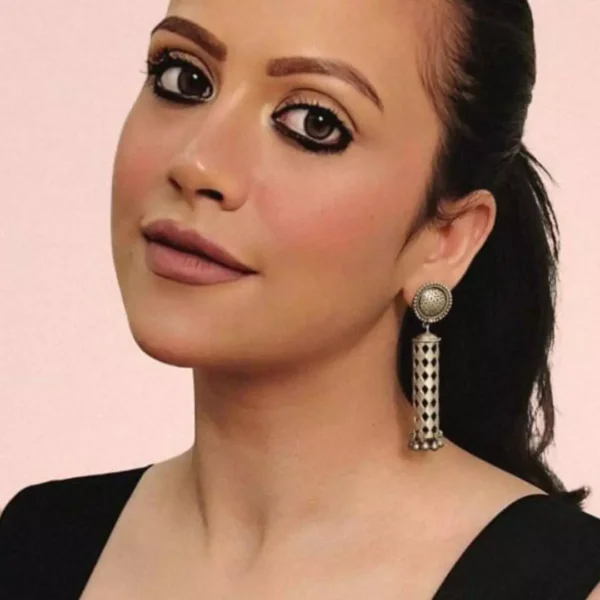 Embrace timeless beauty with the Eternal Grace Jhumko earrings, crafted in premium 92.5 silver and enhanced by a captivating black polish finish. These long earrings exude a vintage allure with intricate detailing, creating an elegant silhouette that adds sophistication and charm. Perfect for both traditional attire and modern ensembles, they are designed to bring a hint of mystique and elevate any look.