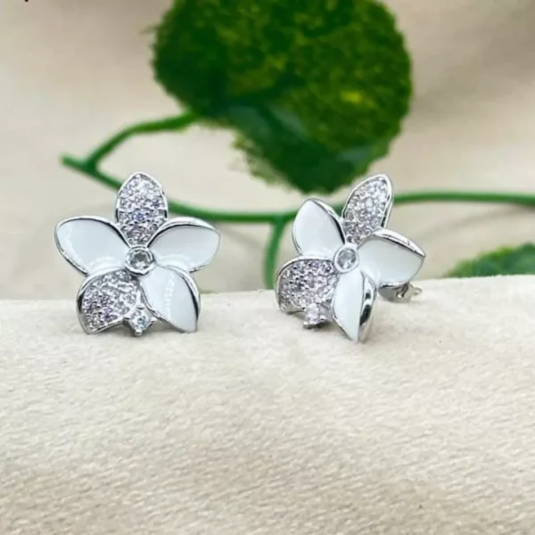 Ethereal Blossom Silver Floral Stud Earrings in 92.5 silver with an enchanting floral design, ideal for adding elegance to any outfit. Price: ₹1,939.