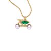 Embark on a journey of elegance with our Ethereal Gemstone Cycle Pendant, exquisitely designed to captivate hearts and inspire awe. Crafted in gold and adorned with enchanting gemstones, this pendant is a testament to timeless beauty and sophistication.
