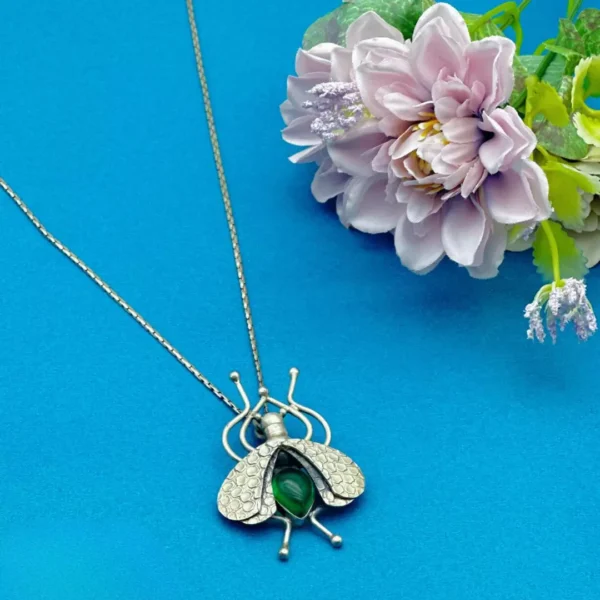 Embrace the wild allure of nature with the Forest Spirit pendant, an exquisite sterling silver piece inspired by the intricate beauty of the forest. Designed with a delicate insect motif, this pendant captures the mystery of woodland life, adding a unique and natural charm to your style. The centerpiece—a radiant green gem—brings an earthy elegance, set against the premium 92.5 silver finish for a sophisticated and timeless look. Whether worn daily or reserved for special occasions, this pendant invites you to carry the spirit of the forest with you.