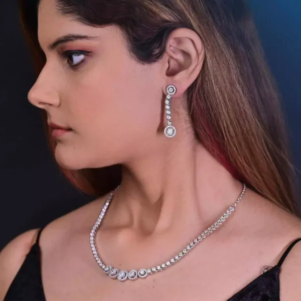 Moonlit Grace: A premium silver necklace set designed for timeless elegance.