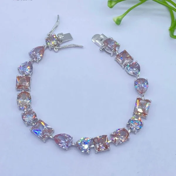 The Prismatic Radiance: Rainbow Gem Bracelet is a dazzling piece that captures the full spectrum of colors in its radiant design. Set in 92.5 silver, the vibrant rainbow gems reflect a beautiful blend of hues that add a burst of brilliance to your wrist. Perfect for daily wear or elevating a special occasion outfit, this bracelet radiates joy and sophistication with its stunning array of colors. The elegant silver setting enhances the colorful glow, making it an ideal accessory for anyone who loves to shine.