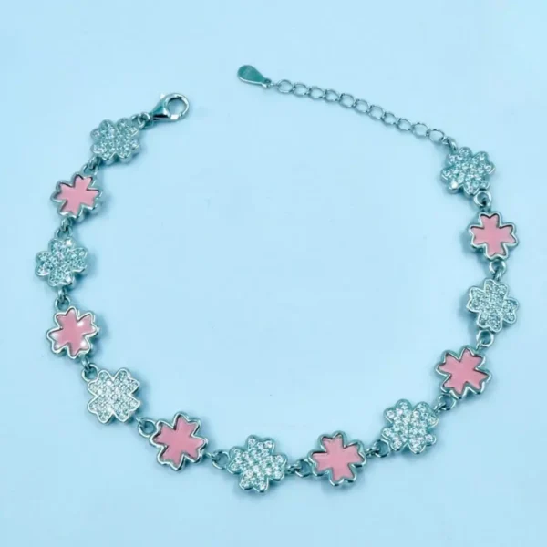 Design: Premium silver with MOP and peach blush micro-studded zirconia stones