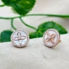 Rose Gleam White Stud Earrings in 92.5 silver with a delicate rose gold finish. A perfect addition to elevate any outfit. White Stud Price: ₹1,870. Midnight Black Price: 1918