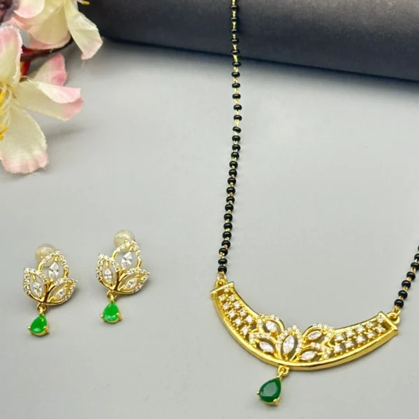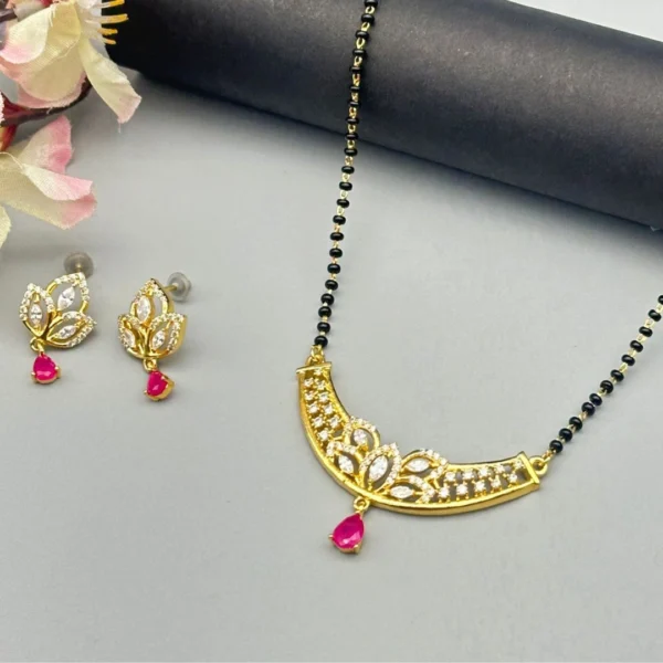 1. Design: Sling design with a red touch for both mangalsutra and earrings