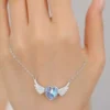 Design: Ocean blue heart stone encased in silver wing motif