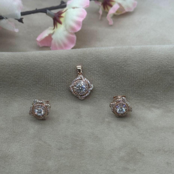Elevate your style with the Zircon Rose Glow Pendant & Earrings Set, a delicate and luxurious addition to your jewelry collection. Crafted from 92.5 silver, this set features a shimmering zircon gemstone accent, beautifully complemented by a refined rose gold finish. Weighing 5.300 grams, this set strikes the perfect balance between elegance and charm, ideal for both everyday wear and special occasions.